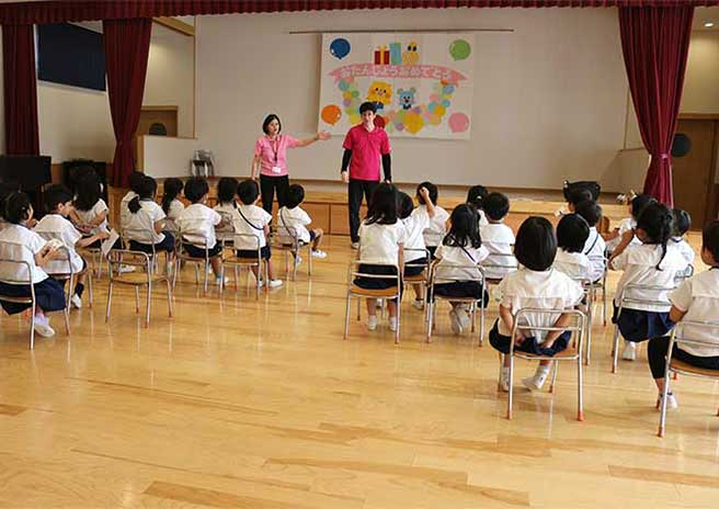 年齢ごとにピアノ専門の講師による音楽指導を行っています。リトミック・ハーモニカ指導、ピアニカ指導などを行い音楽性豊かな子どもの育成に力を注いでいます。